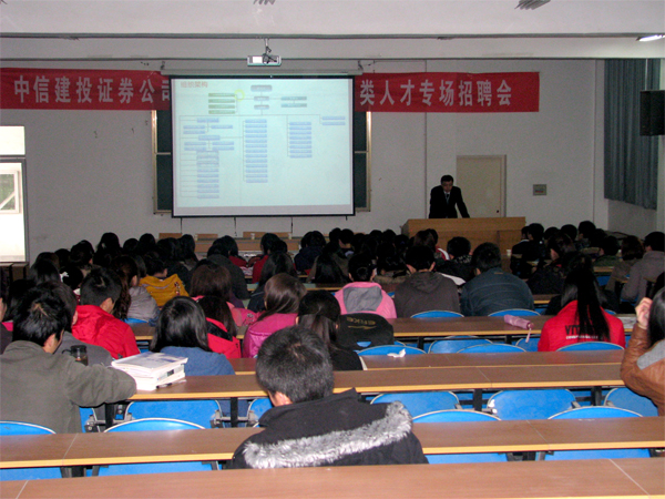 中信建投股份有限公司是中国证监会批准设立的全国性大型综合证券公司,是我国目前为数不多的A类AA级“全牌照”证券公司,在全国20多个省份80多个大中城市设有近130家营业部,安康营业部是中信建投证券公司在陕西的第二家营业部,该营业部已筹建完毕即将开业,本次计划在我院招聘、培养15名理财规划师、客服代表。就业处获得这一消息后,积极与经管系联系组织专场招聘会,为学生就业发展搭建了一个很好的选择平台。