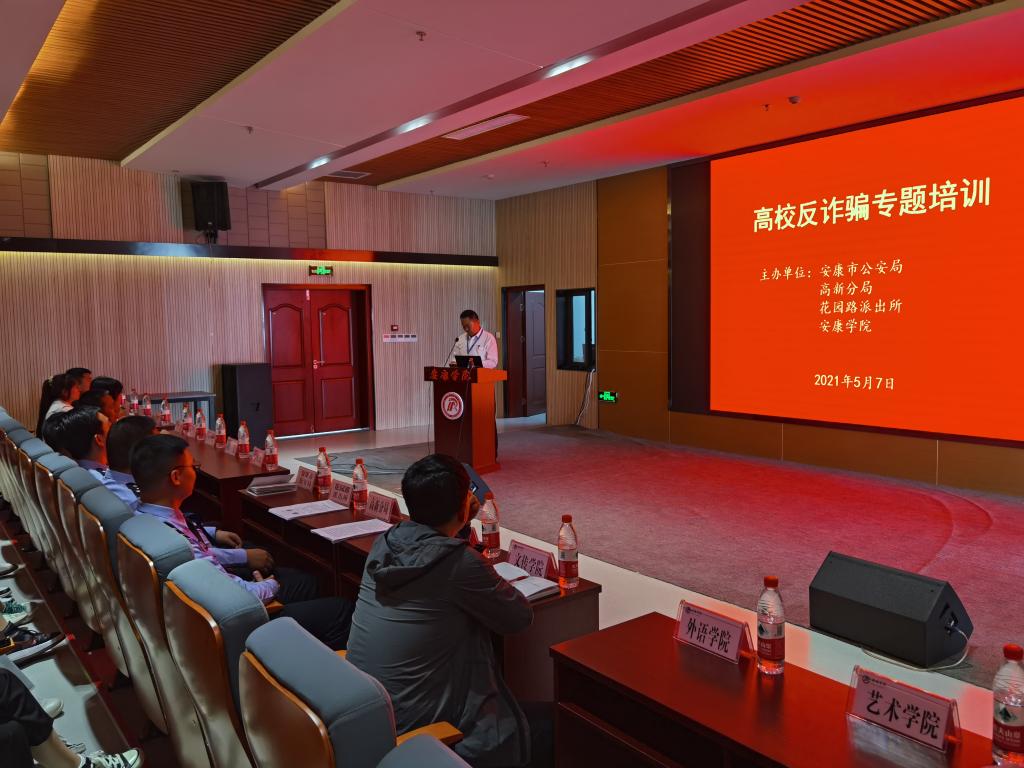 市公安局经文保支队副支队长熊函山向与会人员介绍了高校诈骗案件形势;花园路派出所副所长姜巨龙通报了近期安康市电信网络诈骗发案情况;市公安局高新分局反诈民警刘奎以现实案例分析了电信网络诈骗的严重危害性,着重介绍了网络兼职刷单、网络贷款诈骗、冒充客服诈骗、冒充熟人微信、qq等常见的诈骗手法,希望广大师生提高安全意识,谨记“十个凡是、三个不、两个建议、一个核实”,在遭遇诈骗时不要慌张,及时报警止损。