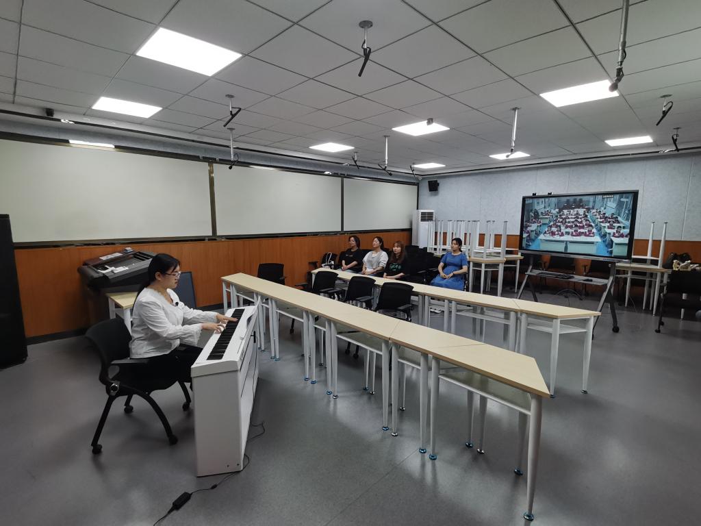 5月12日下午,在best365官网师范生职业技能训练中心4301教室,艺术学院学生乔圆圆为远在白河县茅坪中心小学的同学们讲授了一堂生动的线上互动音乐课。相隔84.5公里的两间教室通过陕西教育扶智平台联系在一起,使得琴声和歌声突破了物理空间的限制,营造出活泼愉快的课堂氛围。