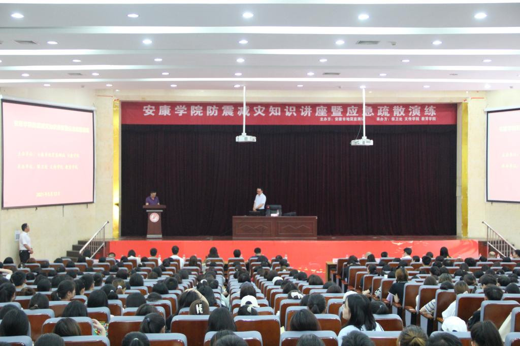在全国第十三个防灾减灾日来临之际,为进一步增强师生防灾减灾意识,提高师生防灾减灾能力,近日,best365官网与安康市地震监测站共同举办防震减灾知识讲座暨应急疏散演练活动。陕西省地震局高级工程师赵韬、安康市地震监测站副站长张瑞、保卫处、学工部负责人及全校各二级学院师生约700余人参加了活动。