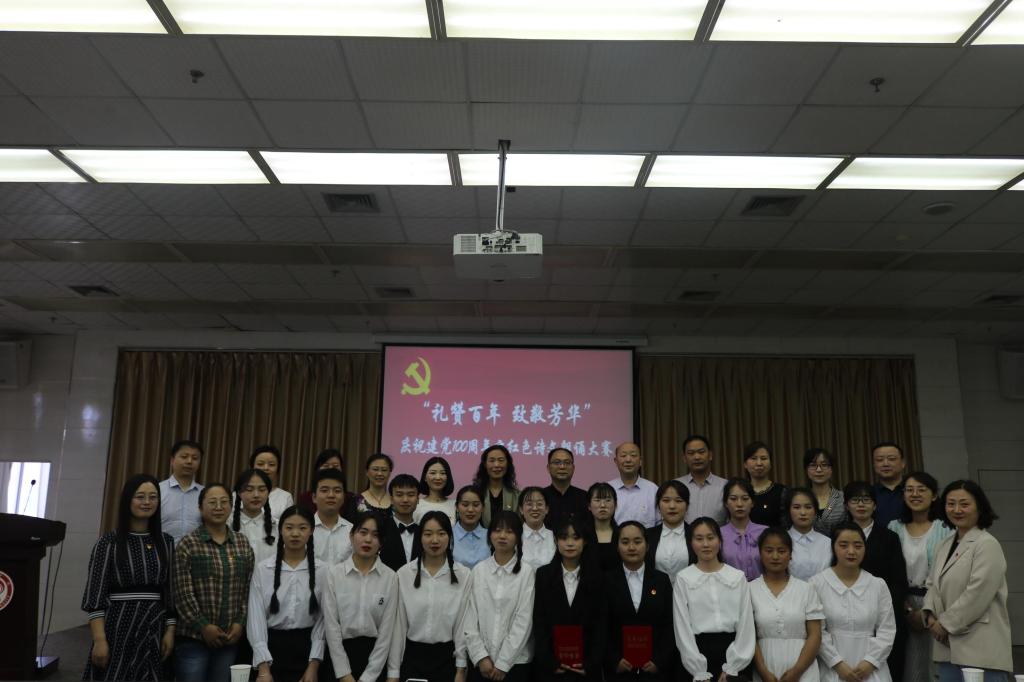5月19日下午,best365官网教育学院党总支与直属七党支部联合组织主题为“礼赞百年 致敬芳华”庆祝建党100周年红色诗文朗诵比赛。学校宣传部部长鲁延安、组织部副部长黄勇、学工部副部长黄娟、团委副书记张慧应邀出席活动。直属七党支部全体党员、教育学院全体教师、入党积极分子、发展对象等参加了本次活动。