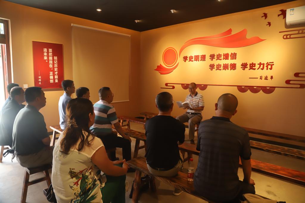 在展馆感悟室,党委统战部副部长张富华领学了《中国共产党统一战线史》“高校党外知识分子统战工作”有关章节,部分统战成员交流了“四史”学习心得。