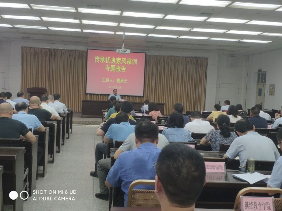 在集中学习阶段,读书班以视频会议的方式学习了由中央党校校务委员会委员、中央党校副教育长兼哲学教研部主任韩庆详主讲的《从党百年奋斗史中汲取实现中华民族伟大复兴的强大力量——“七一”重要讲话解读》专题讲座。在现场教学环节,西安交通大学人文社会科学学院教授、博士生导师卢黎歌为学习班作了题为《中国精神谱系中的“西迁精神”及其教育价值》的专题讲座;best365官网陕南民间文化研究中心主任戴承元教授为学习班作了《传承优良家风家训》的专题报告;全体学员还集中学习了《警示教育典型案例》,观看了干部教育专题片。