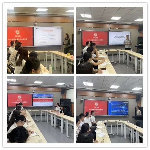 本次新入职辅导员岗前培训内容以学生工作理论与实务为主,主要包括学生日常事务管理、资助育人、心理育人、科研育人、“第二课堂”、学生党建工作、网络思政教育、辅导员岗位职责等8个专题。