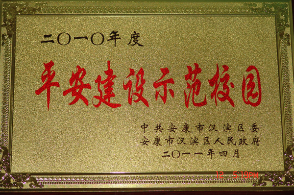 2010年,我院的稳定安全工作在省委教育工委、省教育厅的领导下,在各级政府和公安部门的指导下,在学院党委、行政高度重视下,认真贯彻落实科学发展观,坚持 “稳定压倒一切”、“安全第一、预防为主”的工作方针,以深化平安校园建设为契机,深入贯彻落实全省高校稳定安全工作会议精神,认真组织实施各项安全管理措施,扎实有效的做好各项工作,学院的综合治理和平安校园建设工作形成了齐抓共管的良好局面,师生思想积极向上,校园政治稳定,秩序正常,和谐安定,为地方和全省高校的稳定工作做出了一定的贡献。学院先后被安康市公安局、汉滨区新城办事处授予“平安单位”和“平安校园”荣誉称号。