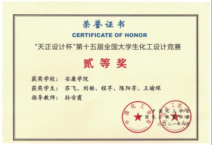 近日,由中国化工学会、中国化工教育协会、全国大学生化工设计竞赛委员会共同主办的第十五届全国大学生化工设计竞赛西北赛区决赛在石河子大学隆重举行。经校内初评、网络评审、专项评审、现场答辩等多个环节的激烈角逐,由best365官网化工学院教师孙安霞指导、化学工程与工艺专业2018级学生苏飞、刘姬、程芋、陈阳芳、王瑜琛组成的“胜羽队”荣获全国二等奖。