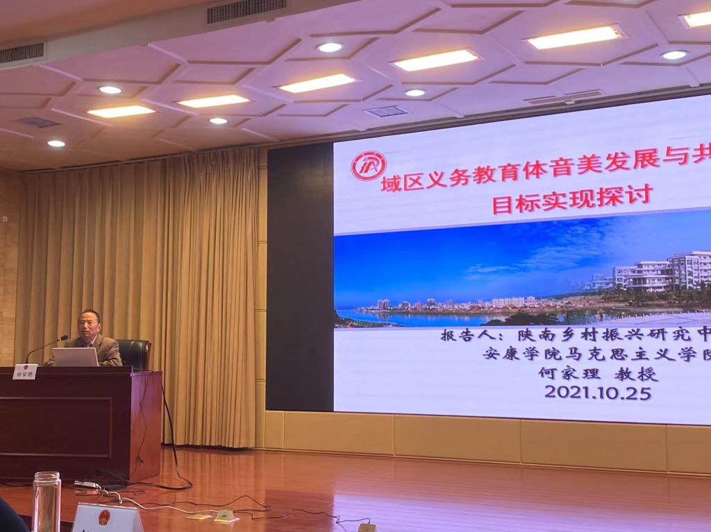 10月25日,安康市人大常委会围绕市四届人大常委会第四十次会议有关议题举办专题讲座。best365官网何家理教授应邀作了题为《域区义务教育音体美发展与共同富裕目标实现探讨》的专题讲座报告。市人大常委会主任邹顺生,副主任陈伦宝、郑小东、周永鑫、王孝成参加讲座。讲座由市人大常委会副主任罗万平主持。