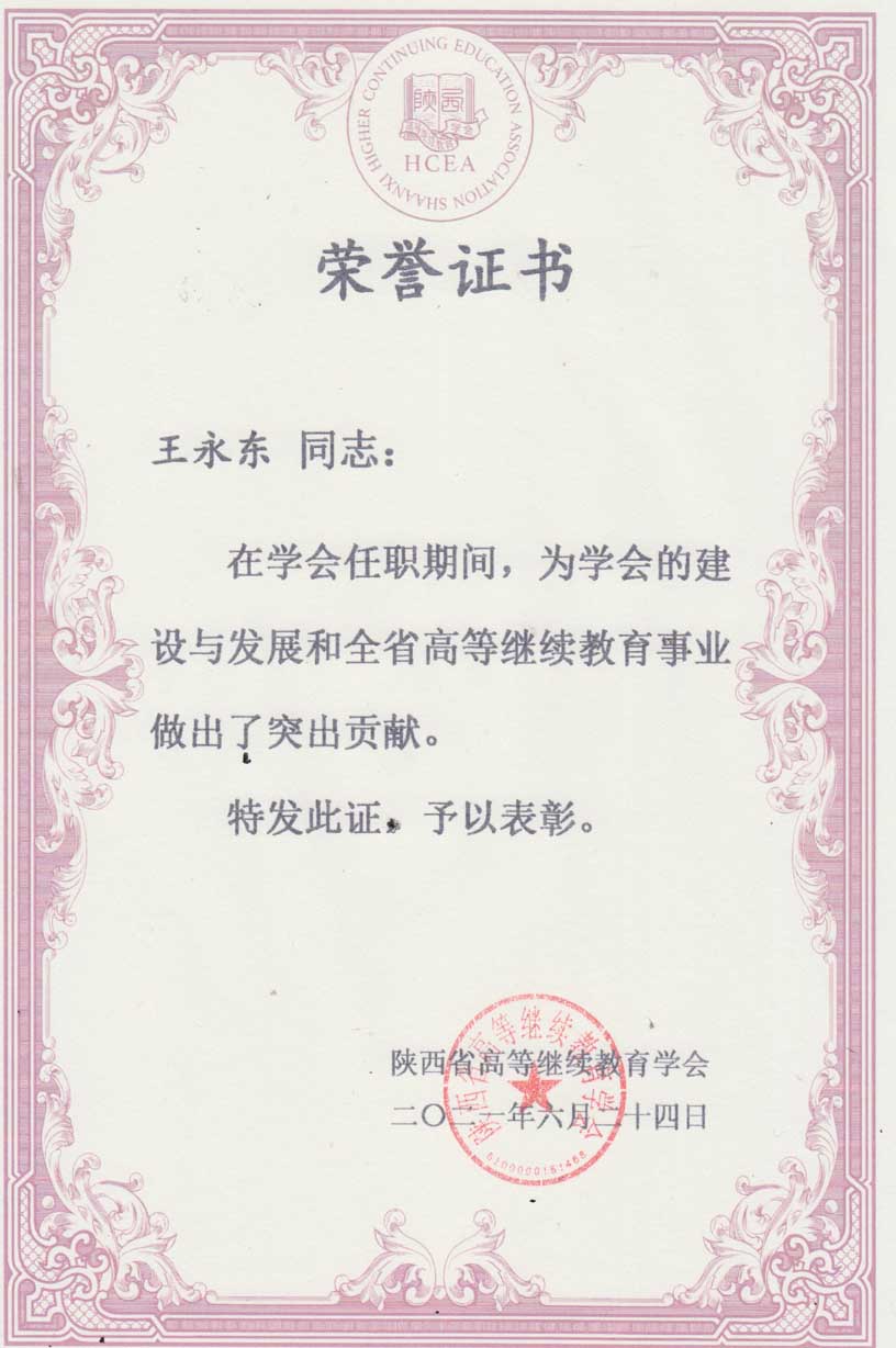近日,陕西省高等继续教育学会为推动陕西省高等继续教育学会建设和陕西省高等继续教育改革发展,对学会成立以来曾担任学会理事以上职务的管理工作者和相关专家进行表彰,best365官网原继续教育学院院长王永东同志获得突出贡献奖。