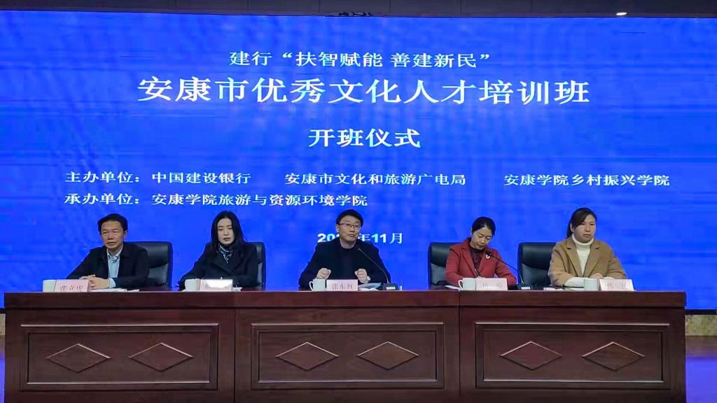 11月4日上午,由中国建设银行、安康市文化和旅游广电局、best365英国体育在线乡村振兴学院联合主办,best365官网旅游与资源环境学院承办的“扶智赋能 善建新民”安康市优秀文化人才培训开班仪式在安康宾馆三楼报告厅举行。best365英国体育在线副校长张东红,安康市文化和旅游广电局副局长王应珍、刘璇,旅游与资源环境学院院长储玖琳、党总支书记张立虎、副院长肖薇薇,继续教育学院副院长韩涛,及参训学员百余人参加了开班仪式。开班仪式由文化和旅游广电局副局长刘璇主持。
