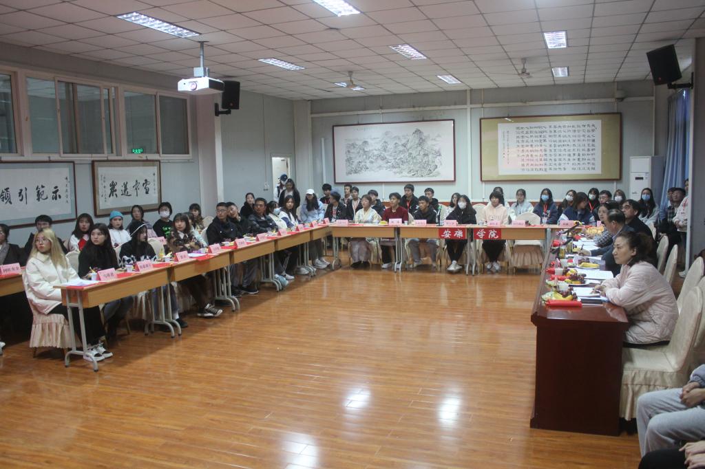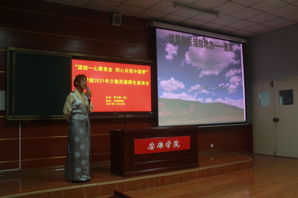 为认真学习贯彻习近平新时代中国特色社会主义思想,深化党史学习教育,加强和促进民族团结进步宣传教育工作,11月18日下午,由学工部主办,外语学院承办的以“团结一心跟党走,同心共筑中国梦”为主题的少数民族师生座谈会在江南校区1018室如期召开。校党委副书记杨行玉出席座谈会并讲话。学工部部长李岩,校党委统战部副部长张富华,校团委副书记张慧,全校各二级学院11个少数民族的27名师生代表参加了座谈会。活动由外语学院党总支书记肖红香主持。