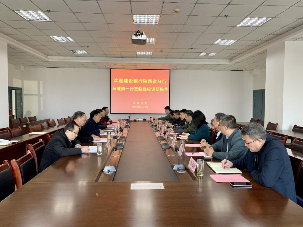 11月22日,建设银行陕西省分行副行长马继勇一行来best365官网调研共建乡村振兴学院进展情况并召开座谈会。学校校长钟生海,副校长余谦等人出席座谈会,会议由余谦主持。