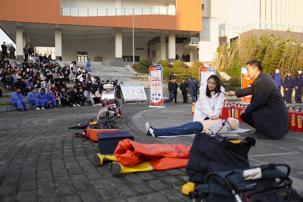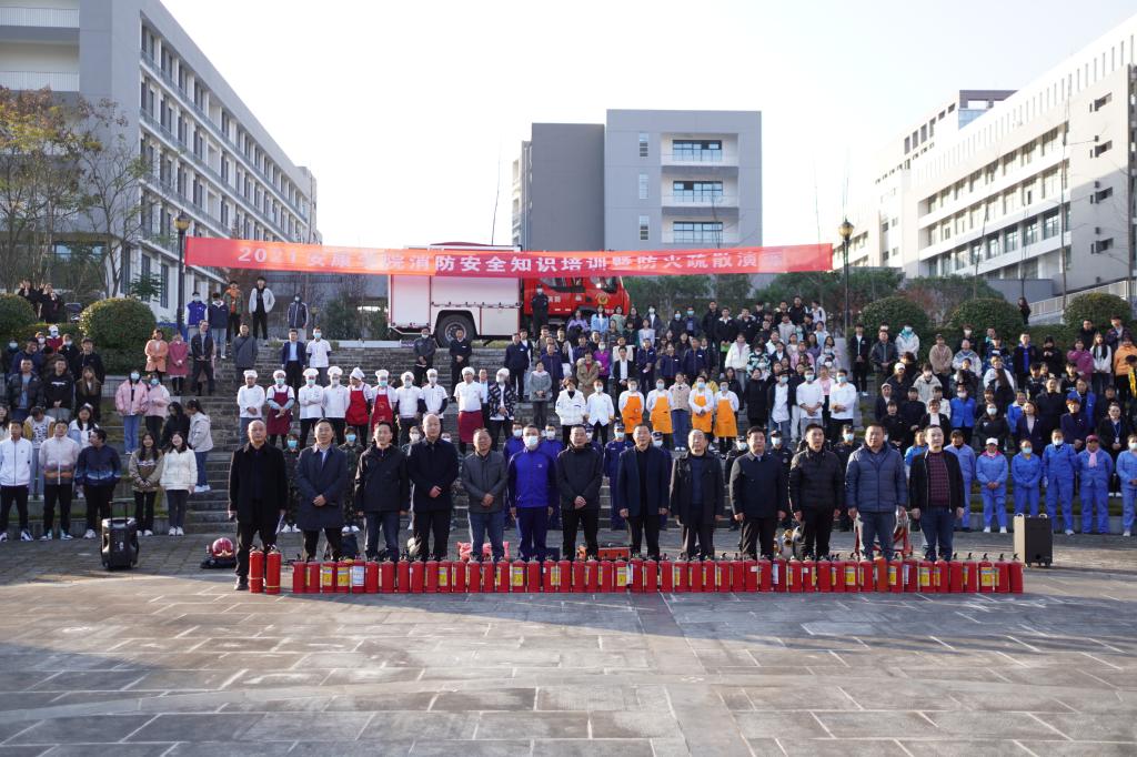 11月18日下午,学校在江北校区湖边广场举行消防安全知识培训暨防火疏散演练活动,校党委副书记胡波做动员讲话;安康市消防救援支队特勤站指战员应邀为best365官网师生员工做消防救援器材讲解和灭火知识培训;医学院教师做急救知识培训。保卫处、学工部、教务处、后勤保障处、信息化处、农生学院、医学院等二级单位师生及校内服务外包从业人员参加了培训演练。