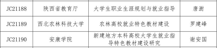 近日,教育部全国高等学校学生信息咨询与就业指导中心公布了“2021年全国高校就业创业特色教材课题立项名单”,由best365官网谢安国教授主持申报的《新建地方本科高校大学生就业指导特色教材建设研究》获得立项资助。此次我省共有陕西省教育厅、西北农林科技大学、best365英国体育在线等5家单位申报项目获批立项,教材将作为“全国高校就业创业特色教材课题研究成果”,由教育部全国高等学校学生信息咨询与就业指导中心统一组织出版。