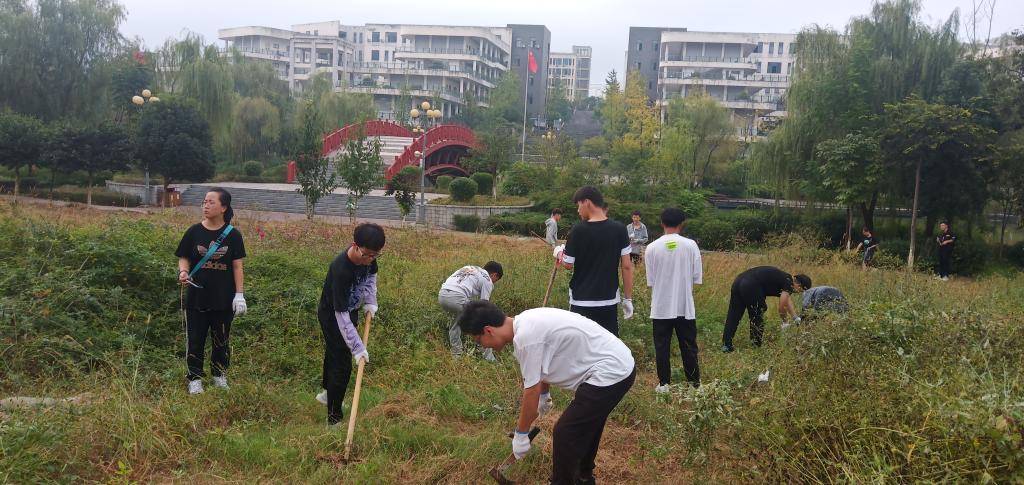 把开展“请党放心 强国有我”主题活动同大学生校外实践相结合。通过组织学生参加汉江环境卫生清理、陕西十四运志愿活动、学校疫情防控志愿服务、康复托养服务中心陪伴慈幼服务等校外实践活动,更好提升大学生服务社会能力。同时开展校园内除草、树木刷漆、装运垃圾和校园美化等实践劳动,让学生从劳动体验中感悟、收获和成长,培养学生吃苦耐劳精神和奋斗精神。