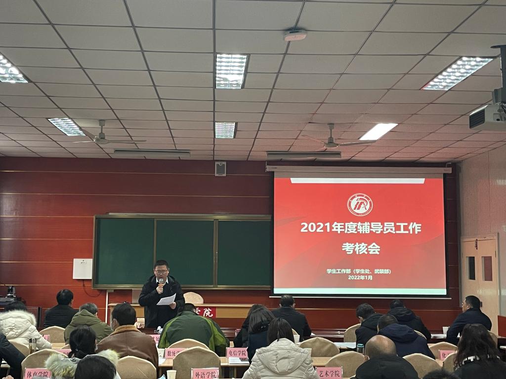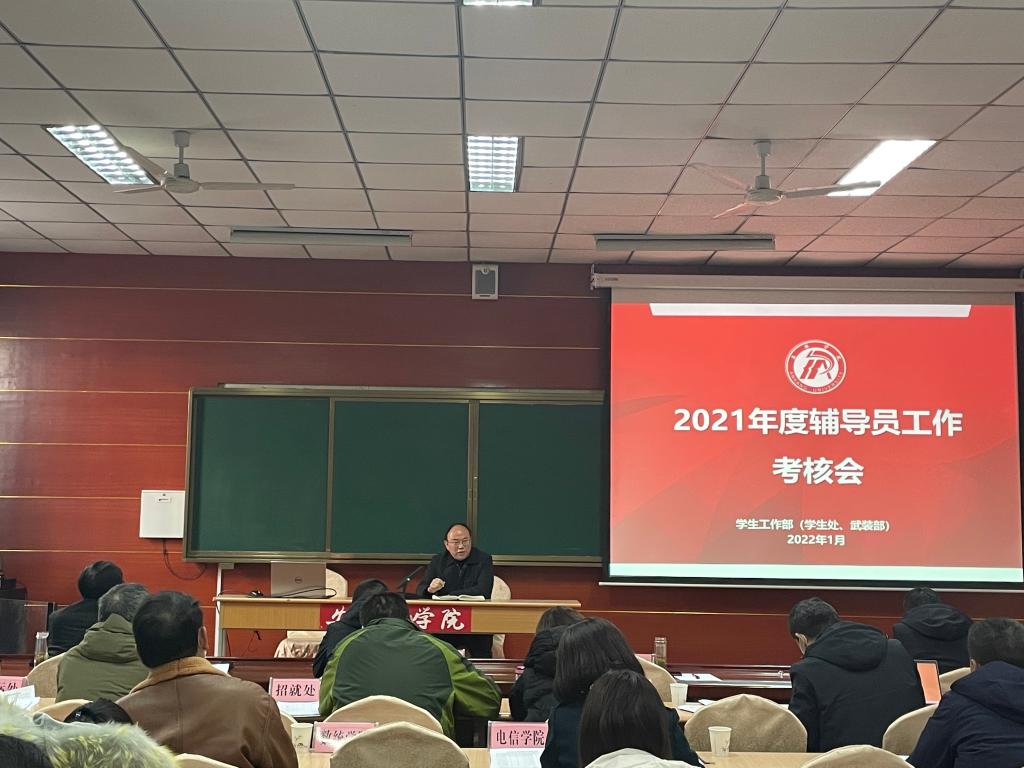 1月12日上午,best365官网2021年度辅导员工作考核会在江南校区举行。校党委副书记杨行玉、副校长余谦出席考核会,宣传部、学工部、教务处、团委、招就处、保卫处、后勤处、国际处等职能部门负责人及二级学院党总支书记等学生工作委员会成员、学生工作专职副书记和二级学院推荐述职评优辅导员参加考核会。会议由学工部部长李岩主持。