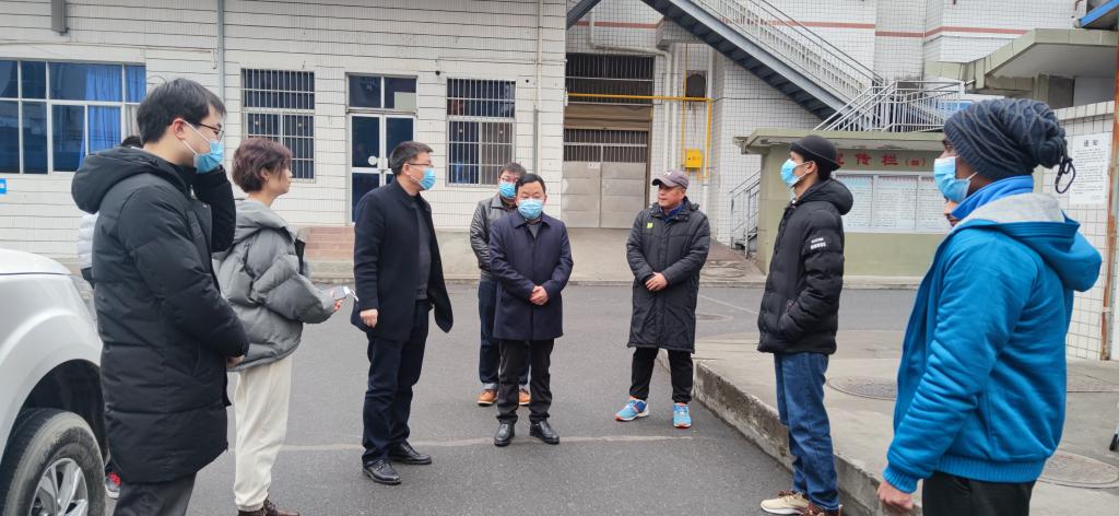 1月23日下午,校长钟生海,副校长张东红到留学生公寓检查指导寒假留学生管理服务工作并看望在校留学生。保卫处、后勤处、国际处及寒假留学生管理工作专班成员等陪同检查。