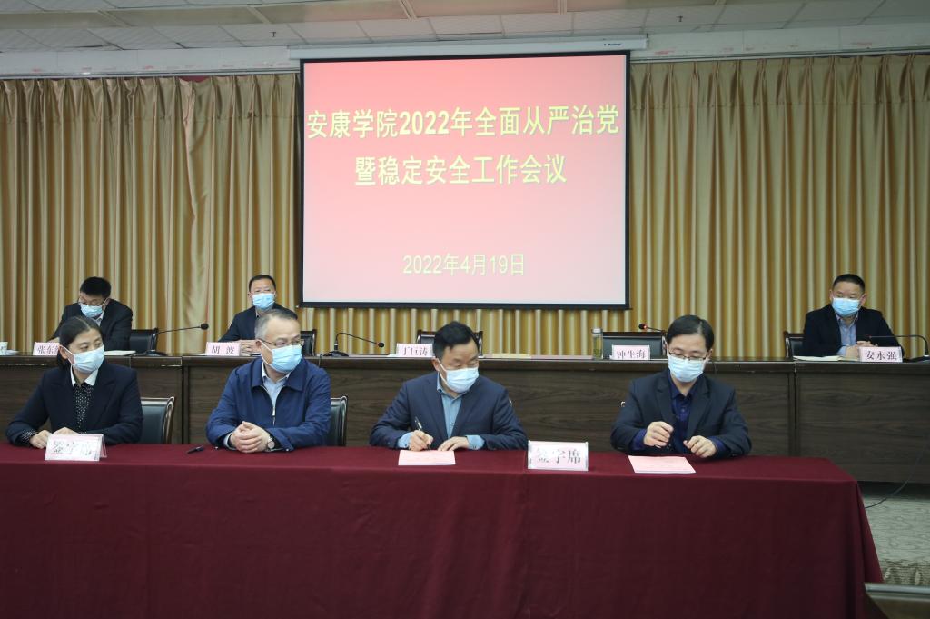 4月19日下午,best365官网召开2022年全面从严治党暨稳定安全工作会议,贯彻落实省委教育工委、省教育厅工作要求,安排部署学校2022年全面从严治党和稳定安全工作,为高质量完成年度目标任务提供坚强保证。学校领导丁巨涛、钟生海、胡波、安永强、张东红,各二级学院、部门处级干部,2021年稳定安全和疫情防控工作先进集体和个人代表参加会议。党委书记丁巨涛做要求讲话,校长钟生海主持会议。