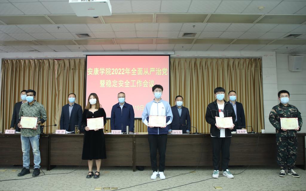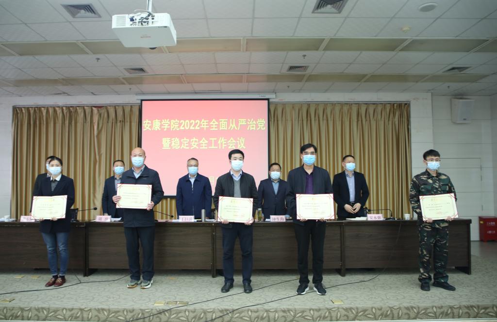 党委副书记胡波宣读学校《关于表彰2021年安全稳定工作先进集体和先进个人的决定》,会议对数统学院、外语学院、教育学院、农生学院、医学院、宣传部、学工部、教务处、人事处、后勤处、信息化处、护校队12个2021年安全稳定工作先进集体,何晓燕、汪敏豪等97名2021年稳定安全工作先进个人进行了表彰。