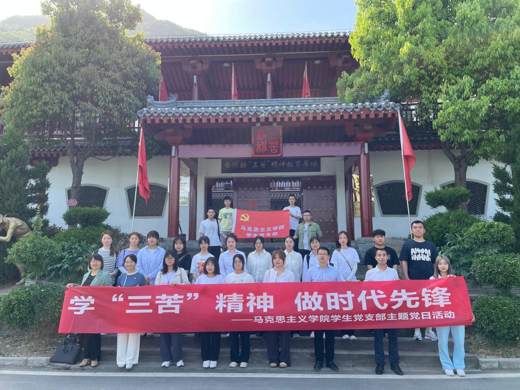 马克思主义学院师生一行首先来到“三苦精神”纪念馆,接受了一次深刻的精神洗礼。在纪念馆,讲解员声情并茂地讲述了“领导苦抓、干部苦帮、群众苦干”的“三苦精神”和“领导苦抓抓机遇、干部苦帮帮发展、群众苦干干事业”的“新三苦精神”的产生、发展与时代变迁。各位党员同志重温了入党誓词,再次接受了党性锤炼。教工一支部书记谭义恒博士为全体师生上了一堂生动的《习近平生态文明思想及生态文明教育》主题党课。