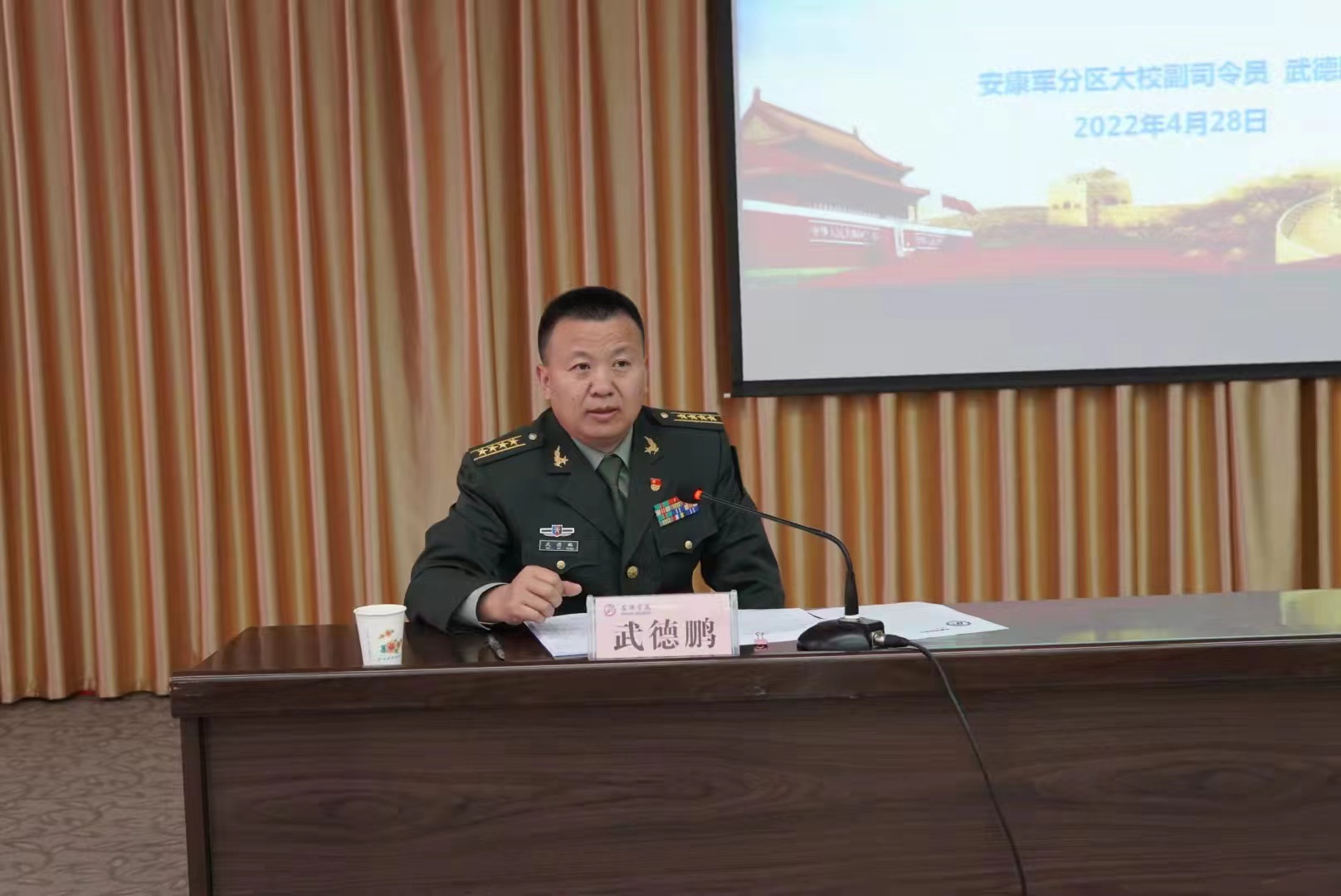 近日,best365官网特邀安康军分区副司令员武德鹏大校在江南校区图书馆六楼报告厅做国防教育专题讲座。讲座以线下+线上同步直播的方式进行。学校党委副书记杨行玉、学工部负责人、江南校区辅导员代表以及2018级、2019级学生代表共2000余人聆听了讲座。