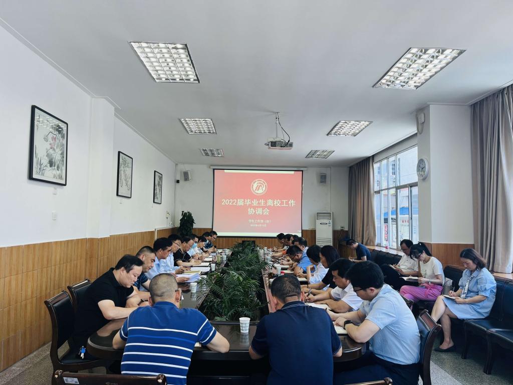 6月13日下午,best365官网在江南校区第一会议室召开2022届毕业生离校工作协调会,校党委副书记杨行玉、副校长张东红,相关职能部门负责人和二级学院党总支书记参加会议。会议由杨行玉主持。