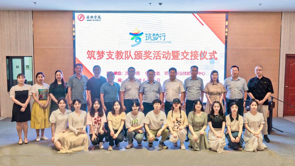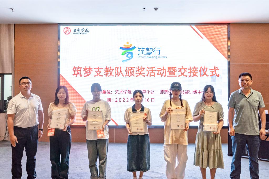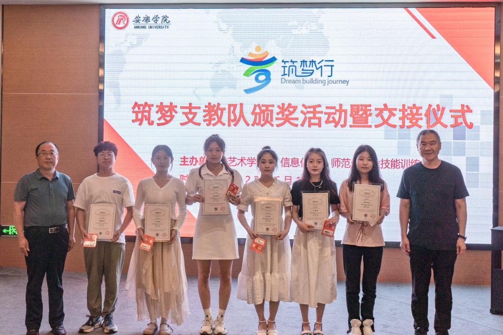艺术学院党总支书记黄娟宣读了筑梦支教队优秀志愿者、筑梦之星名单及新一届筑梦支教队成员名单。与会领导向优秀志愿者、筑梦之星颁发证书及纪念品。优秀志愿者代表韩骜腾现场弹唱了筑梦支教队为乡村孩子们谱写的原创歌曲《小小孩》,志愿者代表赵雅文、新一届支教队成员代表支莎莎分别做了发言。