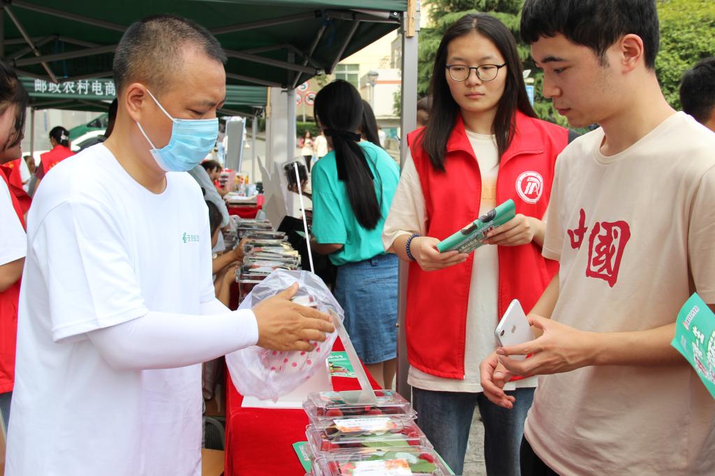 活动现场除布展有活动直播区、杨梅抢购区外,还设置了金融反诈宣传区和校园包裹收寄区,开展了反电信诈骗和校园贷、银行卡出租出借及毕业生校园包裹等宣传活动。