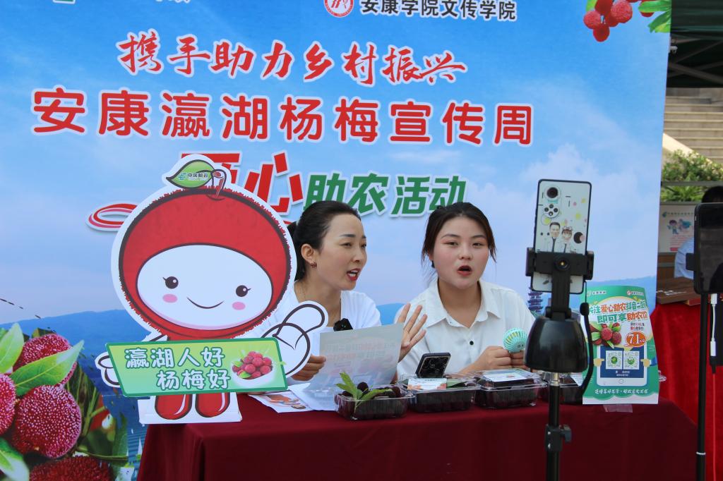 6月17日-19日,正值“电商节”,文传学院与安康邮政再次深度合作,开展瀛湖杨梅爱心助农活动。中国邮政集团有限公司安康市分公司江南分公司总经理王永星、副总经理刘琰,文传学院党政领导以及网媒专业的教师们在活动现场,共同参与爱心助农活动。文传学院的“助农小分队”与安康邮政公司在江南校区图书馆门前和江北校区食堂前先后设立了爱心杨梅义卖活动点,让农户亲自带着自家产的杨梅走进大学校园,一边线上直播互动,一边线下优惠销售。在三天的线下销售中,1000余斤新鲜的杨梅全部售罄。农户激动地说:“要不是安康邮政和best365英国体育在线帮助我这个农民,这些杨梅都要烂在园子里了。”