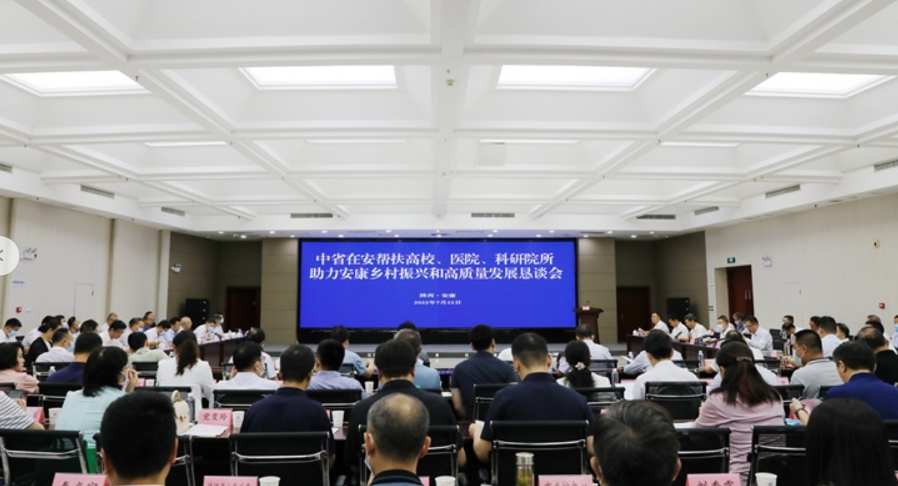 本次恳谈会由中共安康市委、安康市人民政府主办,是在全面贯彻习近平总书记关于“三农”工作重要论述和来陕来安考察重要讲话重要指示,发挥中省帮扶单位优势资源,深度对接帮扶需求,深化帮扶协作,助力安康乡村振兴的背景下召开。中国药科大学、陕西省社会科学院、西安工程大学等38家中省在安帮扶高校医院科研院单位参会。