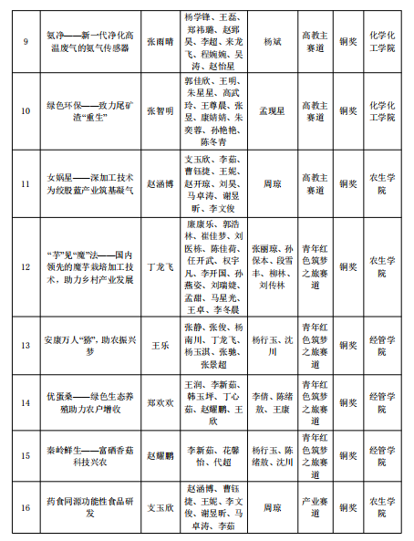 best365官网经管学院《大健康背景下食药用菌新型精准功能性产品的研发及活性研究》获得产业赛道金奖;经管学院《通过新媒体手段打造乡村与产品品牌,助力乡村振兴》获得产业赛道银奖;化学化工学院《安新电池——钠柔新材料,助力新发展》获得“高教主赛道”银奖。