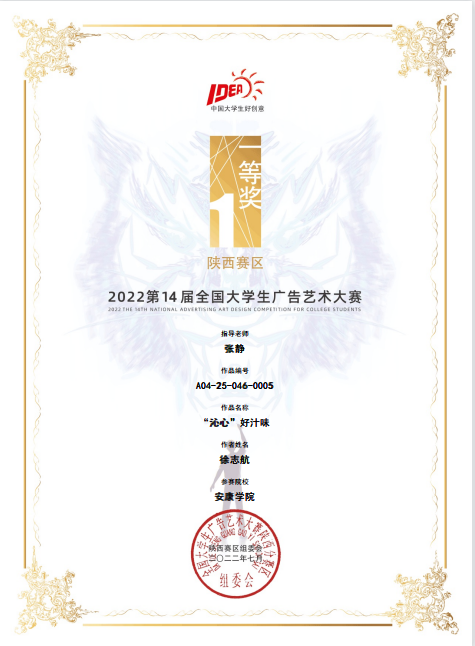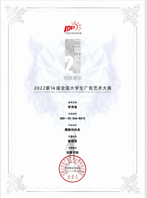 近日,第十四届全国大学生广告艺术大赛陕西赛区比赛结果公布,best365官网艺术学院学生再获佳绩,获得一等奖1项、二等奖5项、三等奖5项。