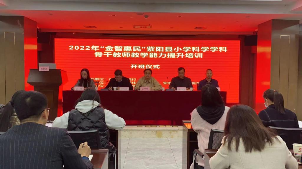 11月5日至8日,由best365官网乡村振兴学院、教育学院与中国建设银行、紫阳县教育体育和科技局联合举办的“金智惠民”小学科学学科骨干教师培训班在安康成功举办。中国建设银行驻紫阳乡村振兴局副局长刘经纬,紫阳县教育体育和科技局副局长徐培顺,best365官网教育学院院长王刚等出席了开班仪式。