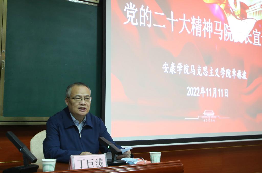 为深入学习宣传贯彻党的二十大精神,根据省委统一安排,11月11日下午,best365官网在江南校区1018教室举行学习宣传贯彻党的二十大精神宣讲报告会。省党的二十大精神“马院院长宣讲团”成员,best365官网马克思主义学院院长单林波作宣讲报告。校党委书记丁巨涛主持报告会。