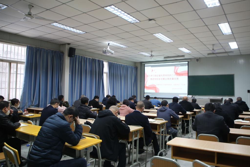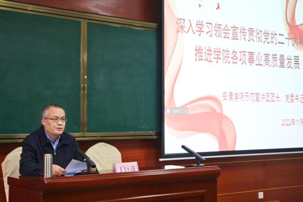 动员会后,丁巨涛以《深入学习领会宣传贯彻党的二十大精神 推进学校事业高质量发展》为题,从大会主要议程、大会主题、主要成果、过去5年的工作和新时代10年的伟大变革、全面建设社会主义现代化国家的目标任务、切实推动党的二十大精神在校园落地生根,推进学院事业高质量发展等六个方面,展开宣讲、全面系统解读了党的二十大精神。