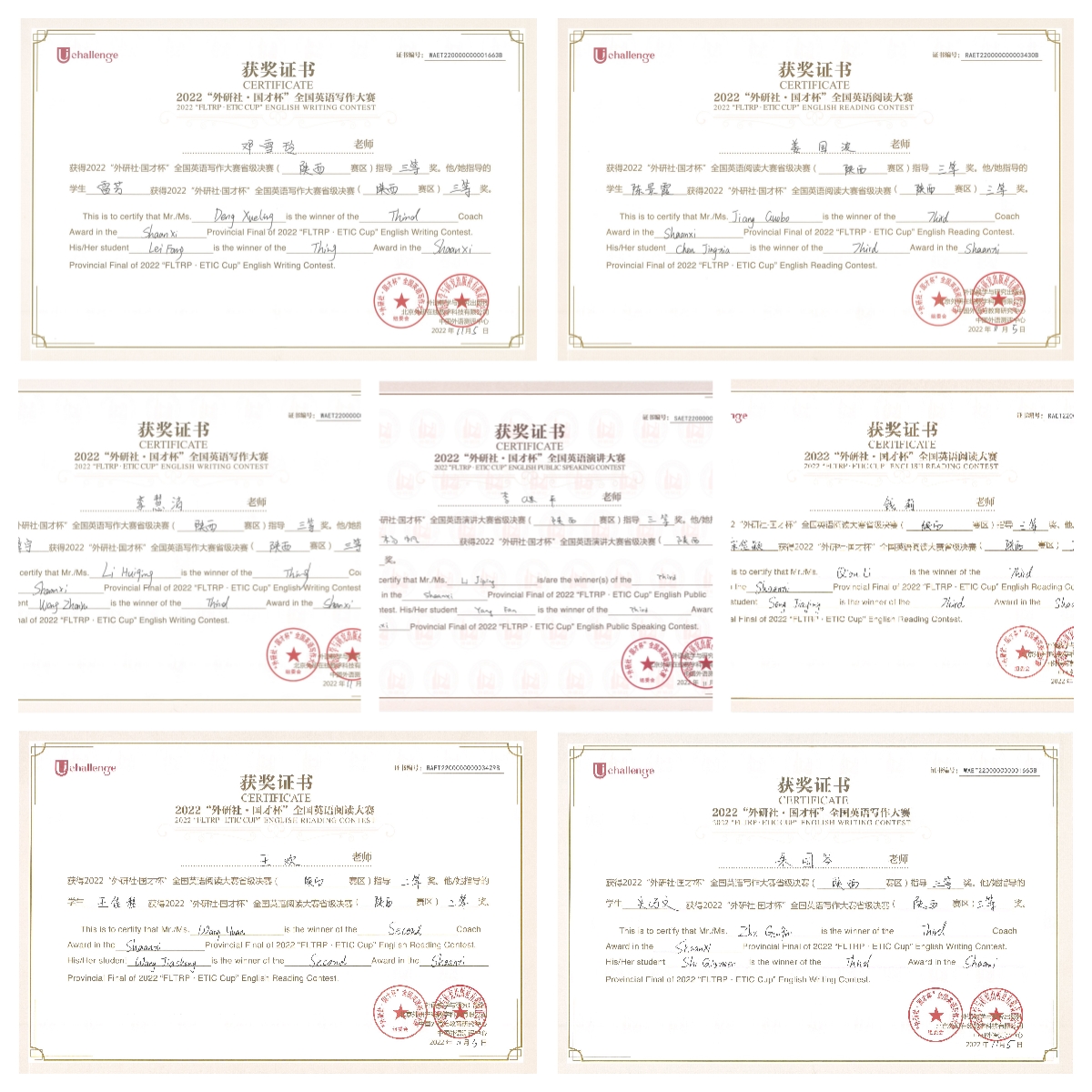 “外研社·国才杯”全国英语写作大赛、演讲大赛、阅读大赛是我国规模最大、级别最高、竞争最为激烈的大学生英语挑战赛事,是为大学生展现风采搭建的一个广阔舞台,也是外语教育领域凝聚创新、融通中外的交流媒介。自赛事启动以来,外语学院积极动员,严格筛选,认真准备,最终推选出七名选手代表best365官网参加陕西赛区复赛。因疫情防控工作需要,本次复赛采用了线上形式完成。此次竞赛取得的良好成绩,不仅体现了best365官网学子积极进取的精神风貌,也展示了best365官网外语专业人才培养和大学英语教学改革的成效。best365官网外语学院将以此为契机,不断优化英语专业人才培养方案、深化大学英语教学改革,努力产出更多标志性成果,为学校教育教学改革做出更多贡献。