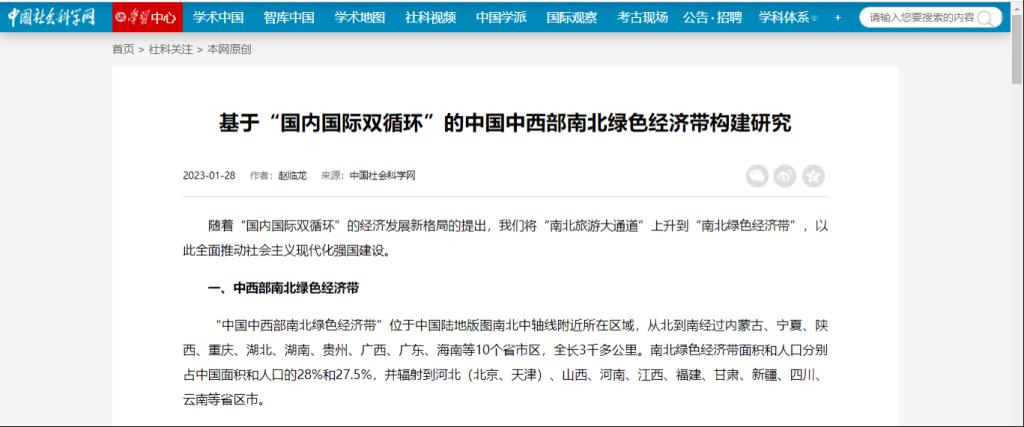 01月28日,中国社会科学网“本网原创”栏目,发表best365官网赵临龙教授的文章《基于“国内国际双循环”的中国中西部南北绿色经济带构建研究》。
