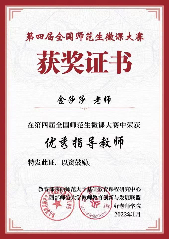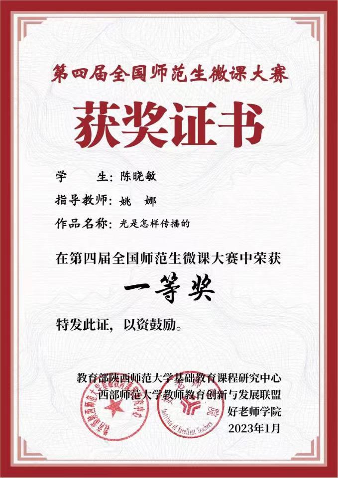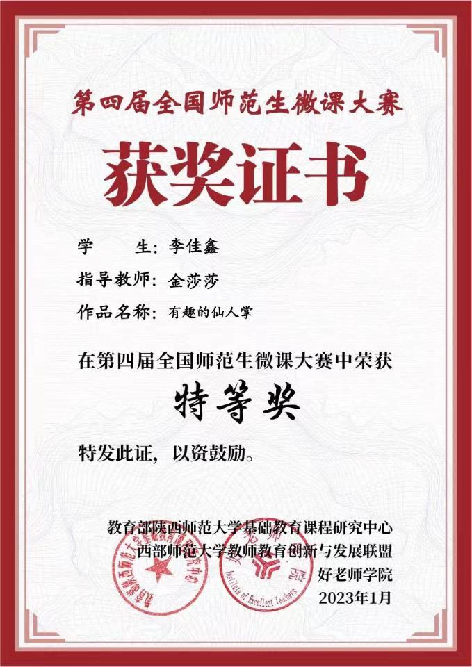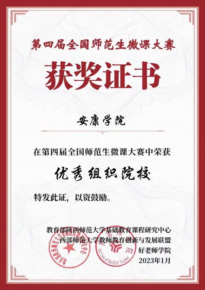 该比赛由教育部陕西师范大学基础教育课程研究中心、西北教师教育联盟主办。此次大赛参赛院校共计162所,提交作品2703份,经专家严格评审,共评选特等奖136件,一等奖272件, 二等奖951件,优秀组织院校80所,优秀指导教师129名。