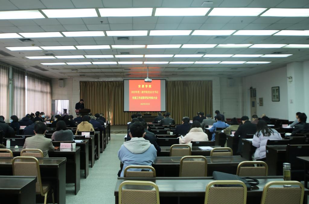 根据省委教育工委《关于开展2022年度高校基层党建述职评议考核工作的通知》精神和best365官网基层党建述职评议考核工作安排,3月2日上午,二级学院党总支书记2022年度基层党建述职评议考核大会在江南校区图书馆六楼报告厅举行。学校领导、党委委员、相关职能部门负责人及13个二级学院党总支书记、院长、党支部书记代表等60余人参加会议。会议由党委委员、组织部部长屈险峰主持。