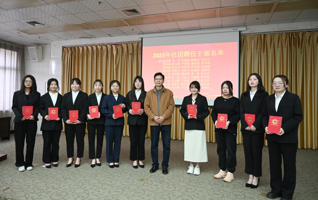 金华峰为新聘任的45位社团干部颁发了聘书。他指出,两个社团在协助图书馆加强日常管理、推进阅读推广工作中发挥了重要作用,希望大家赓续传统,继续发挥桥梁纽带和示范引领作用,加强实践锻炼,弘扬团结协作、积极创新、追求卓越的精神,带动全校青年学子“多读书、读好书、善读书”,努力为书香校园建设贡献力量。