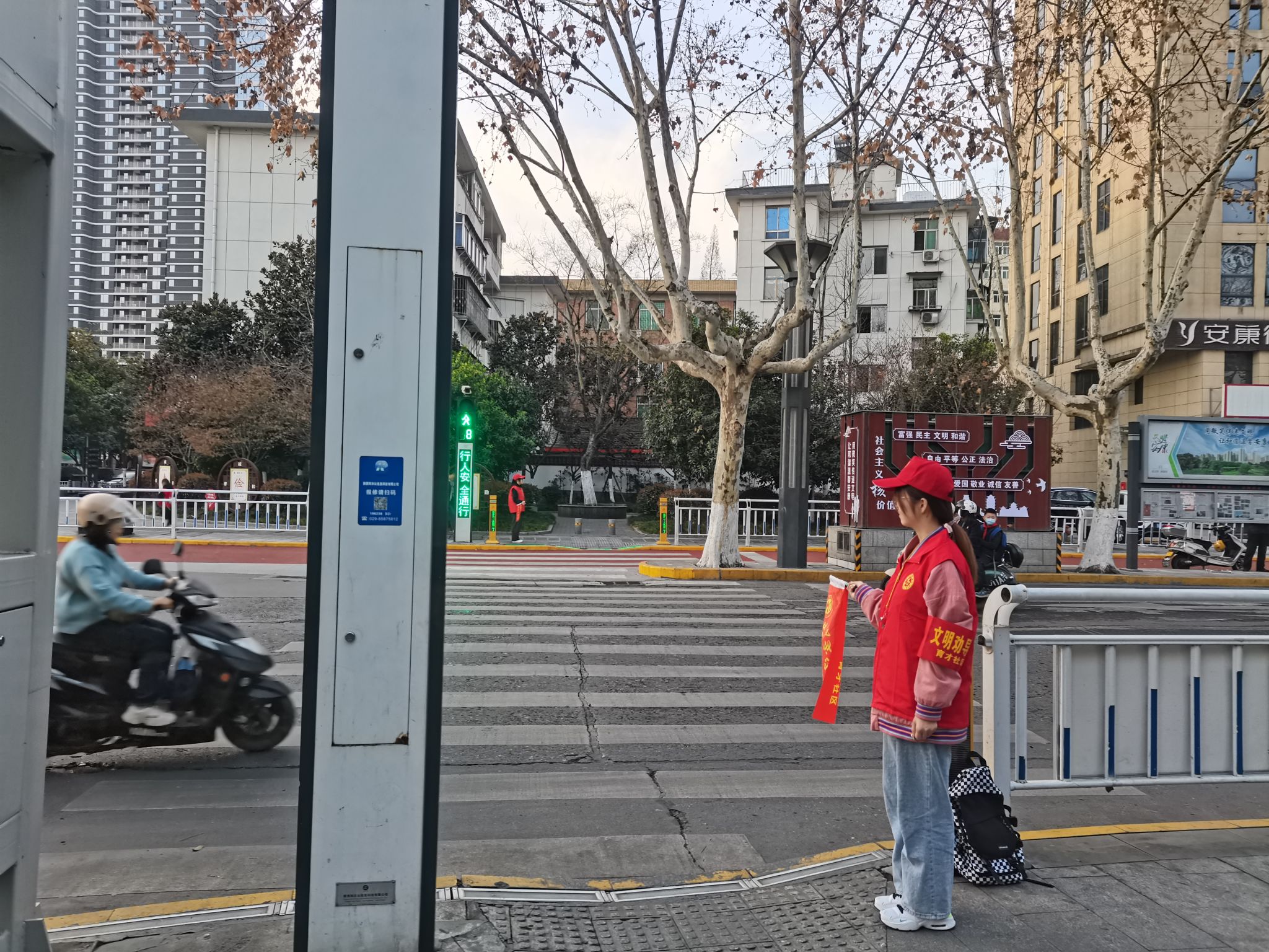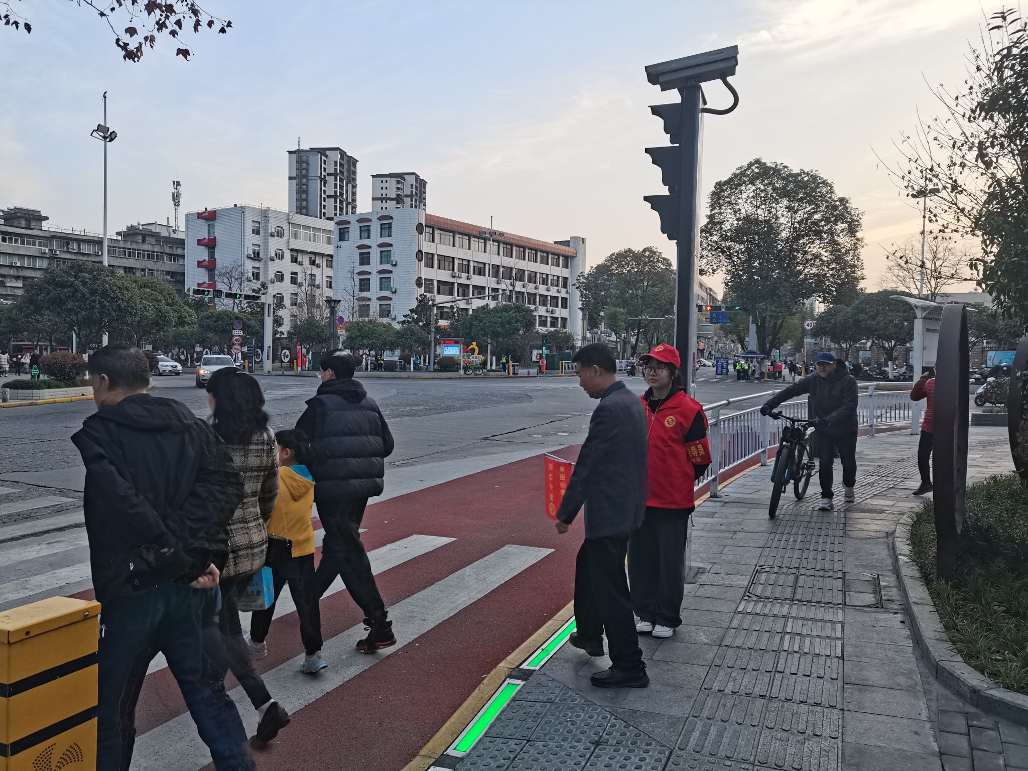 “您好,请在线内等候。”“您好,请在绿灯亮起时再通行。”……活动当天,师生们身穿志愿者马甲,手举文明劝导小旗帜,在市委十字口轮班值守,对文明礼让行人,骑乘摩托车、电动车戴安全头盔等交通文明进行宣传,对不遵守文明交通的行为耐心细致地进行劝导,在维护交通秩序、引导市民有序通行中展现使命担当。