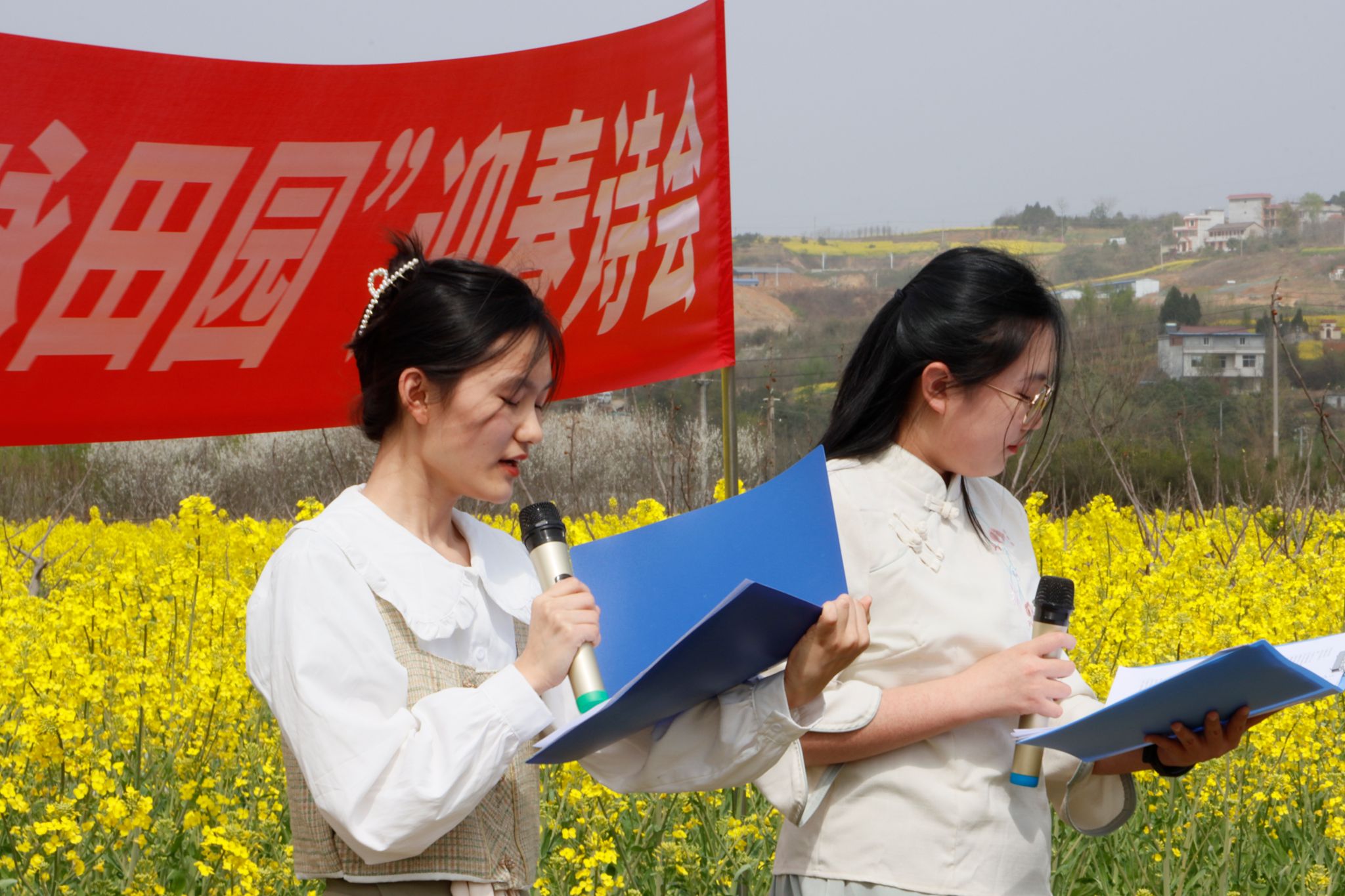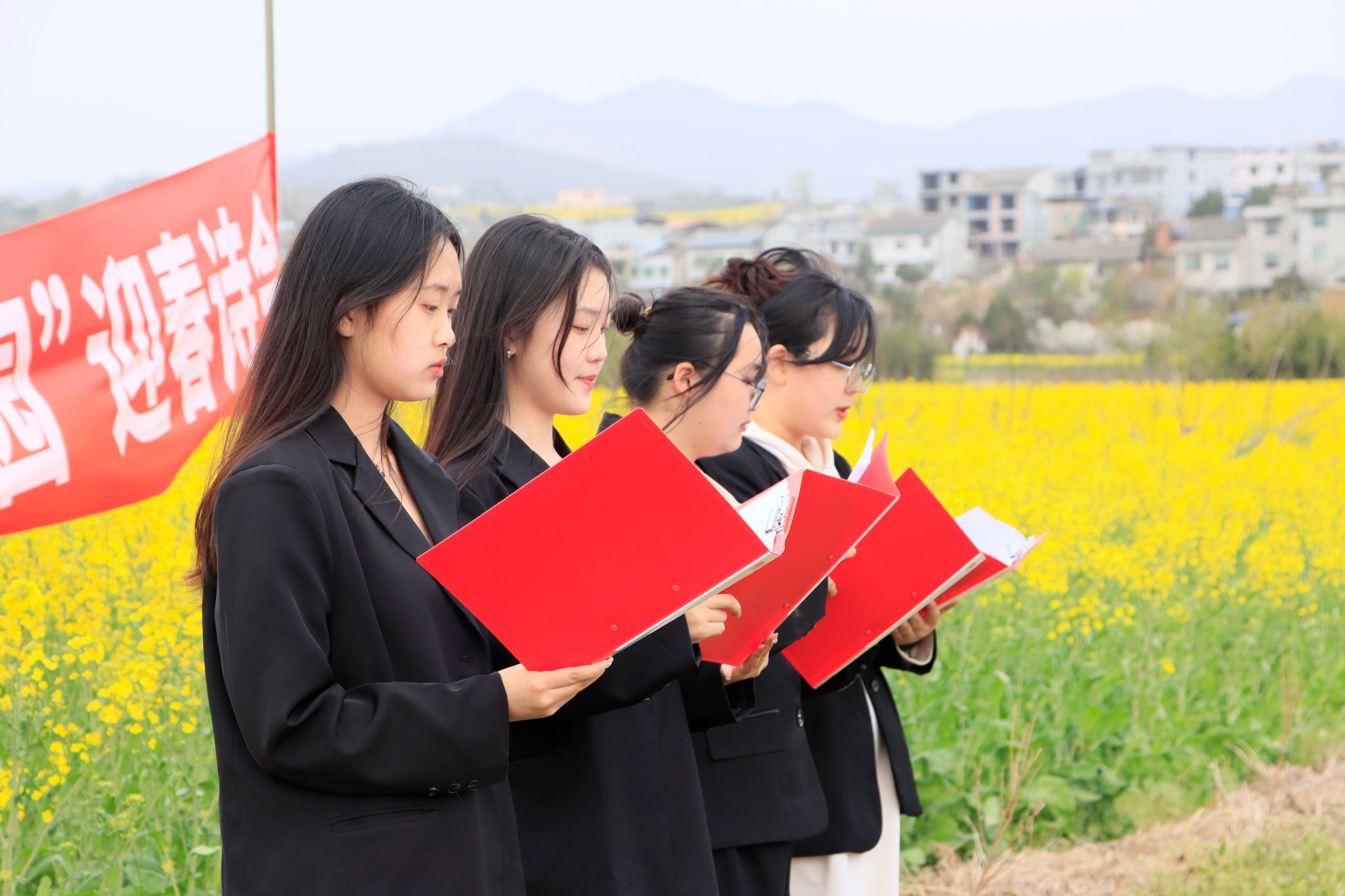 近日,best365官网文学与传媒学院在张滩镇黄洋河畔油菜花田顺利举办了2023年迎春诗会。文传学院党总支书记芦伟、副书记杨海蓉及部分教师代表席了本次活动。活动由辅导员邹棠华组织,影视戏剧社承办,文传学院近70名学生参加了本次诗会。
