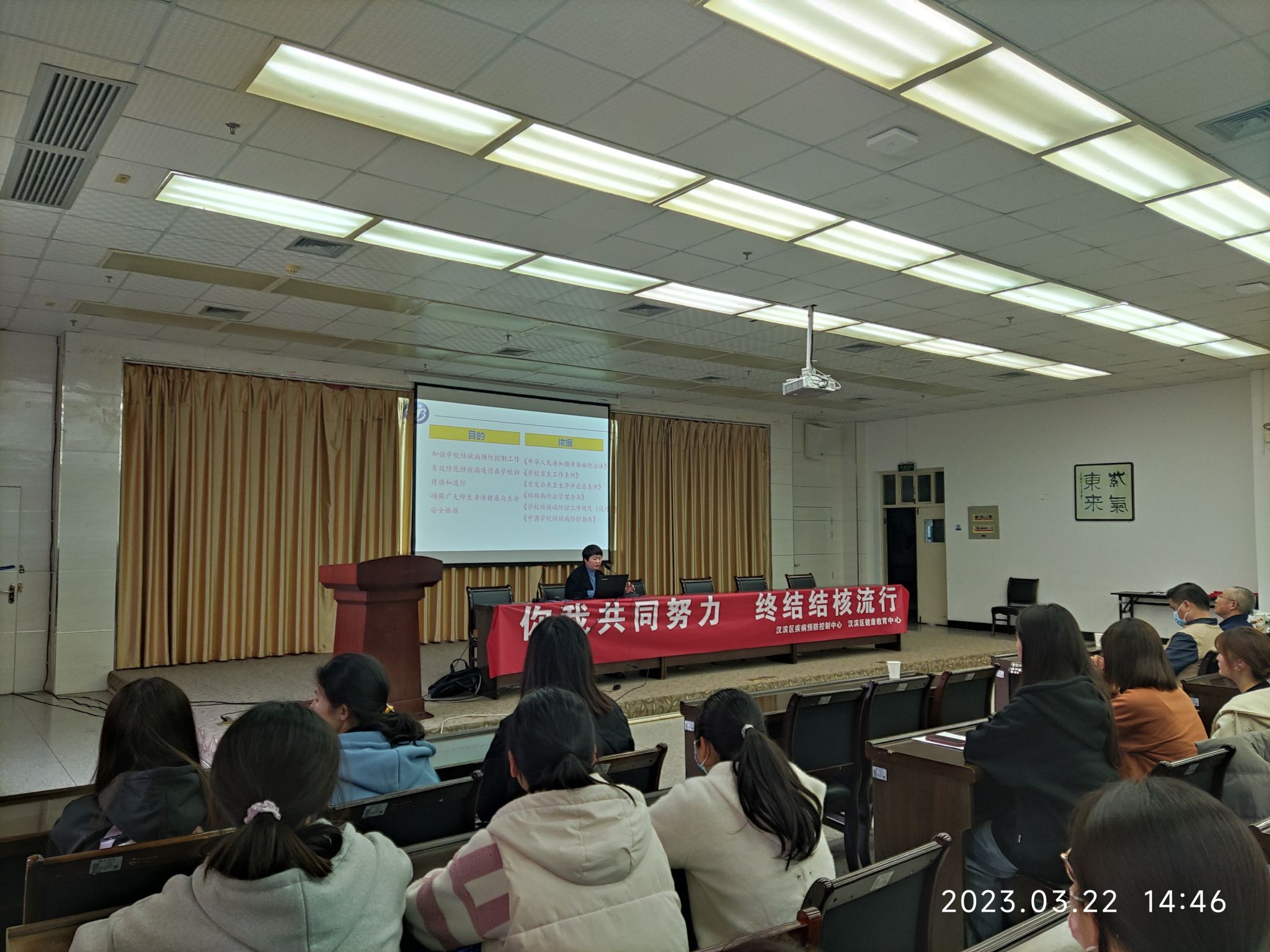 刘芙蓉为师生做了《你我共同努力,终结结核流行》专题讲座,用通俗易懂的语言为学生们解释了什么是肺结核、肺结核的症状、危害、传播方式,以及诊断和治疗等问题,并号召学生们要积极行动,从自身做起,平时养成良好的生活习惯,注重个人卫生,加强体育锻炼,均衡营养,增强抵抗力,有效降低肺结核的传播风险。