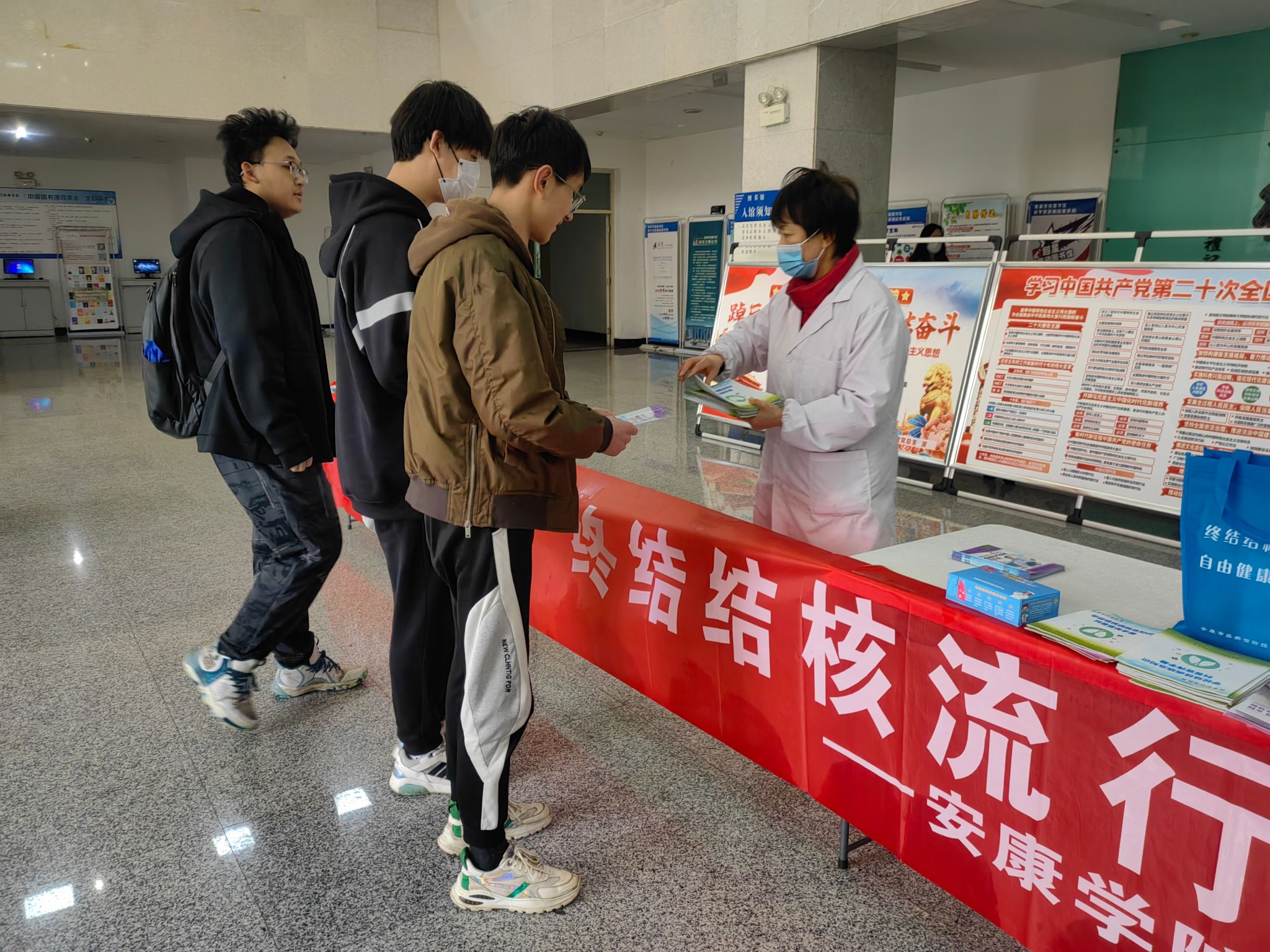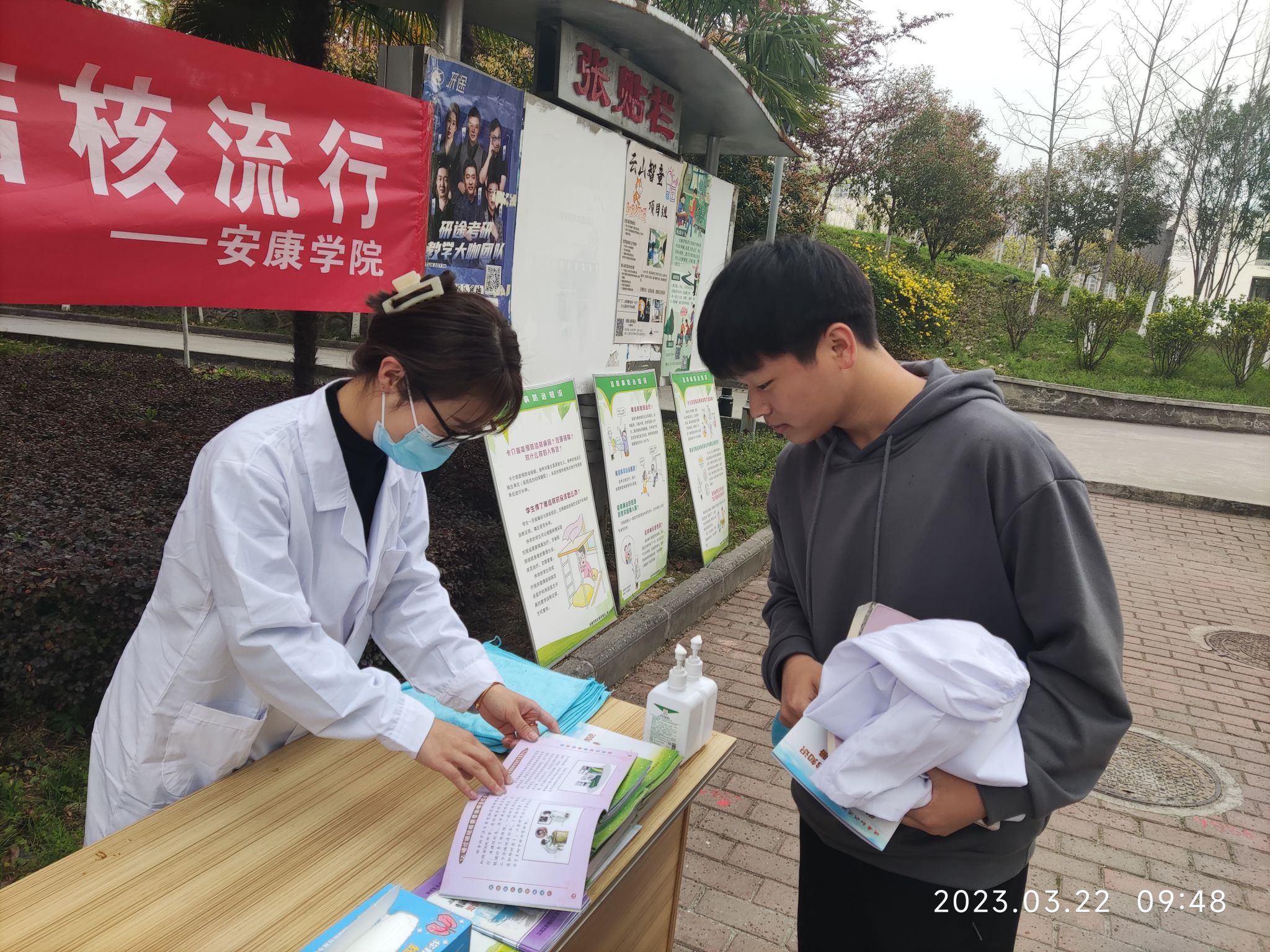 在第28个世界防治结核病日来临之际,best365官网联合安康市疾病预防控制中心、汉滨区疾病预防控制中心、新城社区卫生服务中心在江南校区开展了以“你我共同努力终结结核流行”为主题的世界防治结核病日宣传系列活动。