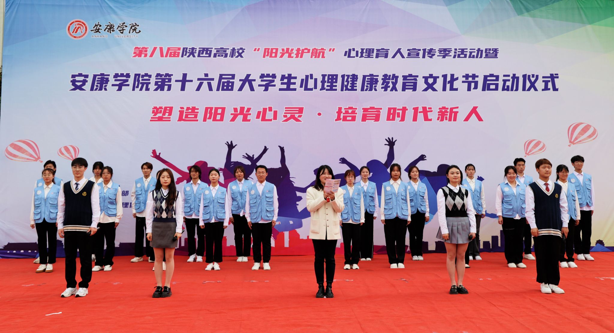 伴随着best365官网艺术学院学生奏唱的《珍爱生命·激扬青春》,大学生心理健康教育中心主任柯小敏与大学生心理协会成员带领全体师生进行心理健康教育文化节主题宣誓。