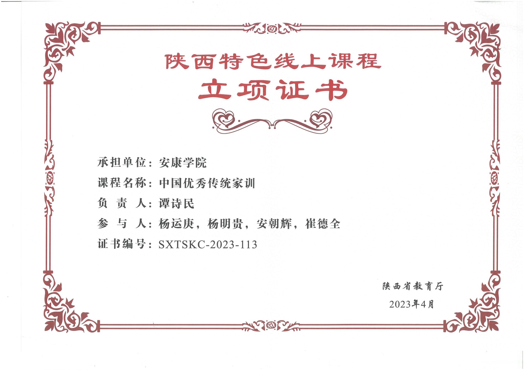4月20日,陕西省委教育工委、省教育厅组织召开了陕西数字教育大会。大会以“数字化赋能教育高质量发展”为主题,包括主会场及基础教育、职业教育和高等教育等3个分会场活动。高等教育分会场活动中发布了陕西特色线上课程立项建设名单,并向教师代表颁发了立项证书。我院谭诗民博士主持申报的《中国优秀传统家训》课程获陕西特色线上课程立项建设,并参会领取了立项证书。