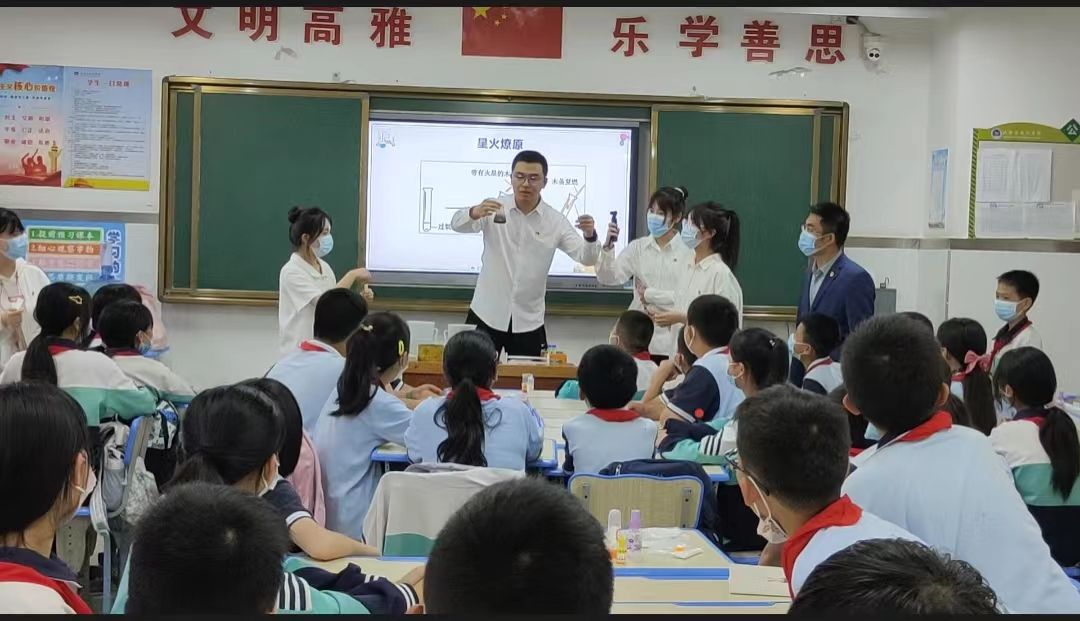 5月31日,best365官网化工学院“化学之光”科普团赴安康市汉滨初中(滨江校区)小学部开展科普志愿服务活动。化工学院副院长袁光辉带领相关教师参加了此次活动。