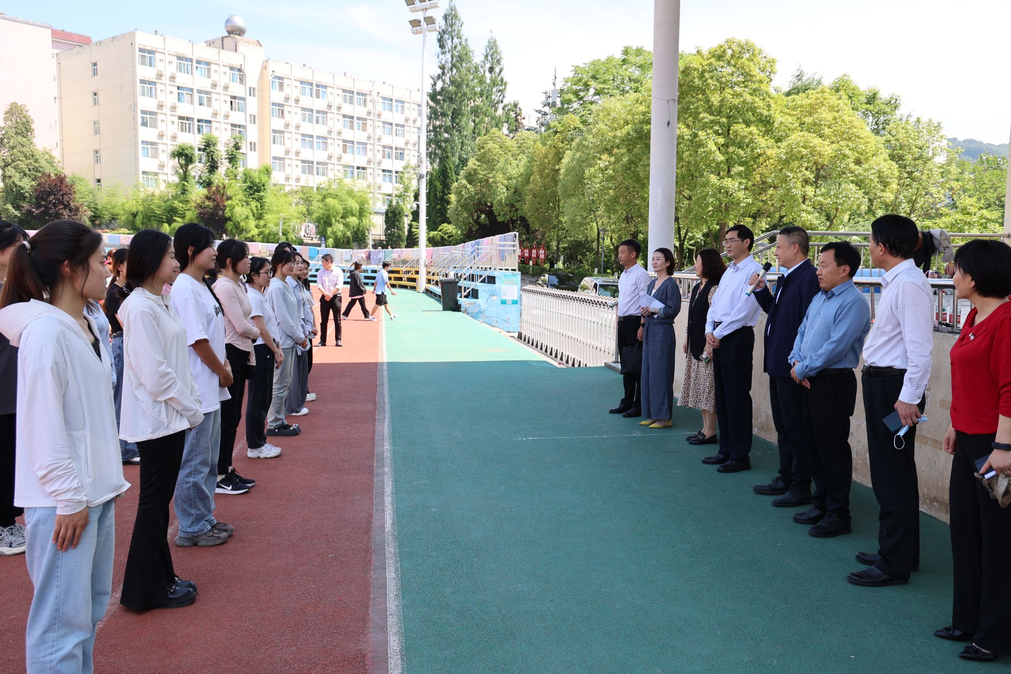 6月6日下午,安康市副市长周耀宜一行到best365官网检查指导第二十三届中国安康汉江龙舟节文艺节目排练工作,校长钟生海迎接检查。党政办公室副主任周云、校团委副书记张慧及相关师生参加了活动。