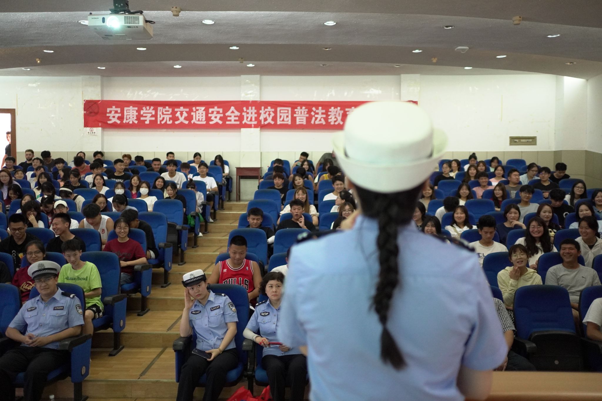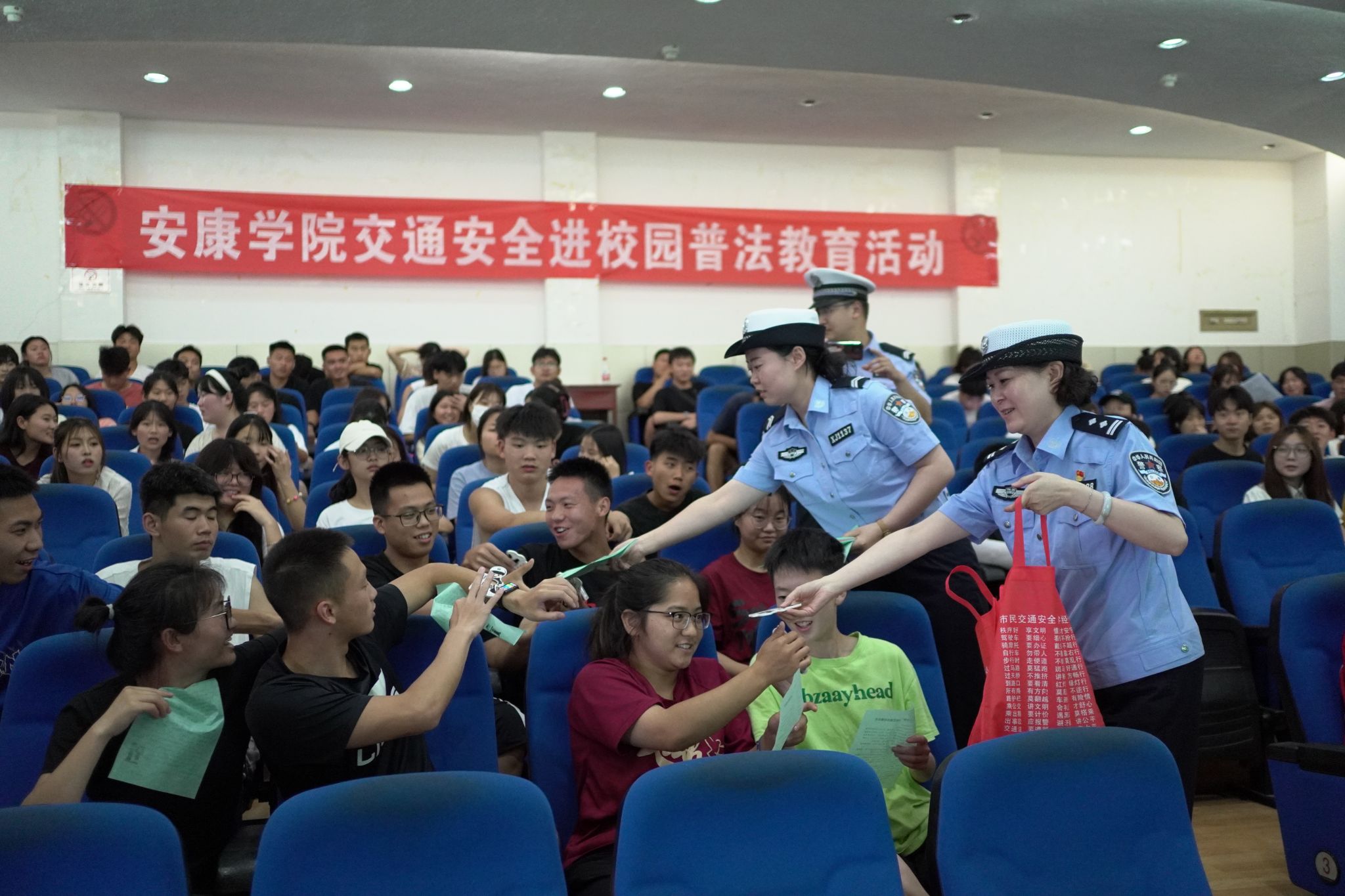 近日,best365官网联合市公安局汉滨分局交警大队、高新分局交警大队,分别在江南、江北校区开展交通安全进校园活动。各二级学院学生会干部、班干部、安全信息员约500余人参加了活动。