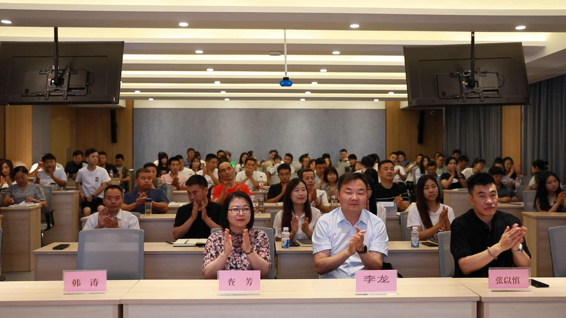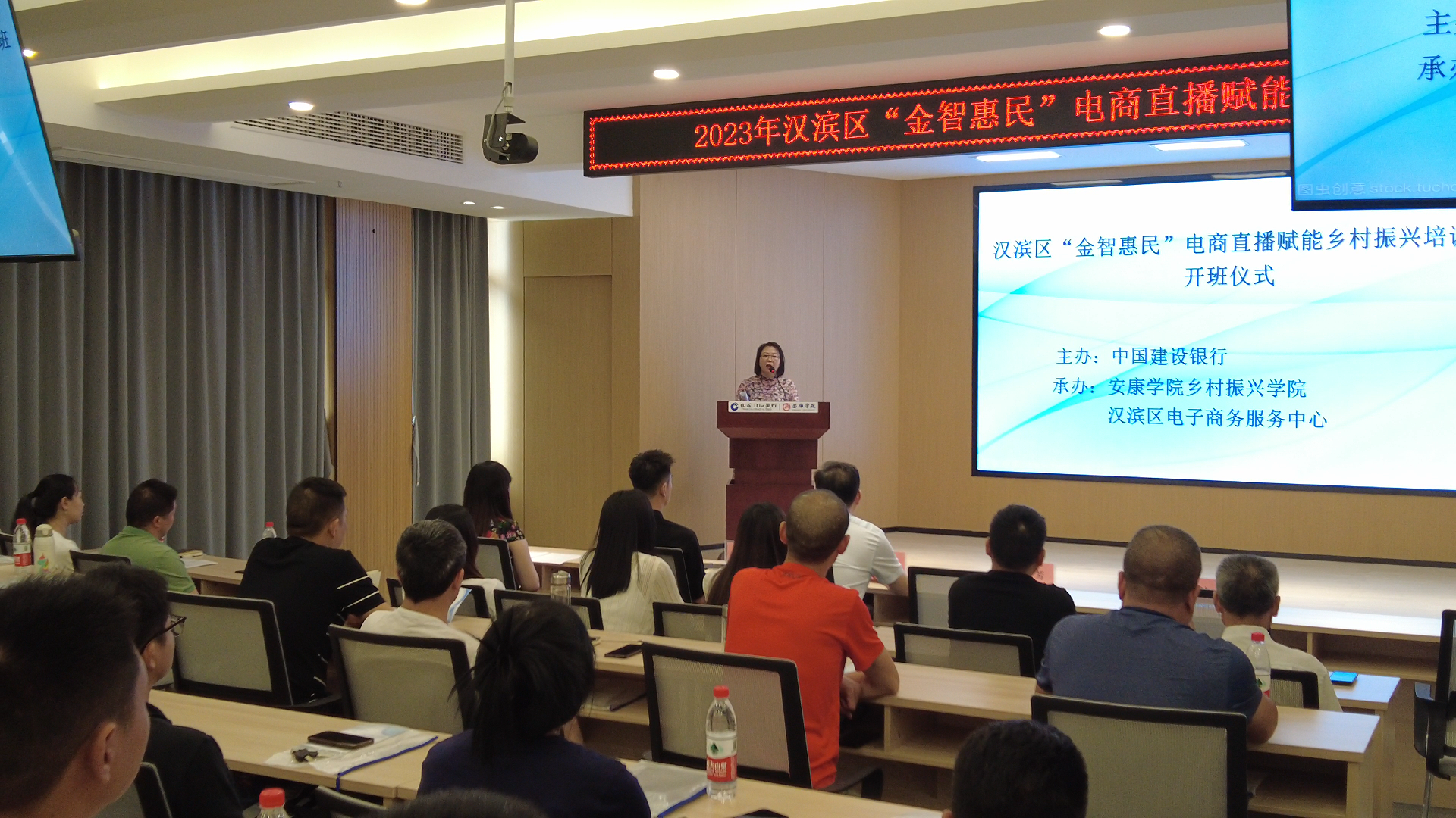 7月19日上午,best365官网在江北校区乡村振兴学院举行了2023年汉滨区“金智惠民”电商直播赋能乡村振兴培训开班仪式。本次培训由中国建设银行主办,best365官网乡村振兴学院、汉滨区电子商务服务中心联合承办,继续教育学院院长、乡村振兴学院副院长查芳,汉滨区电子商务服务中心主任李龙,舟鸿云仓(安康)直播基地负责人张以慎及来自汉滨区各乡镇、社区100余人参加了开班仪式。开班仪式由继续教育学院副院长韩涛主持。