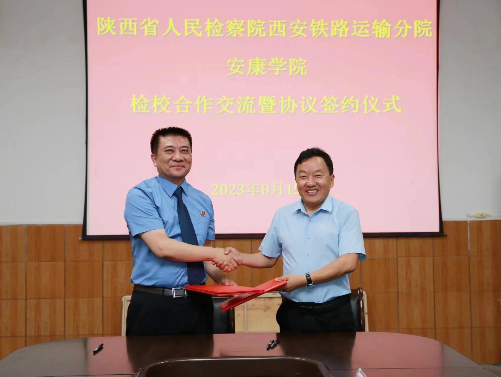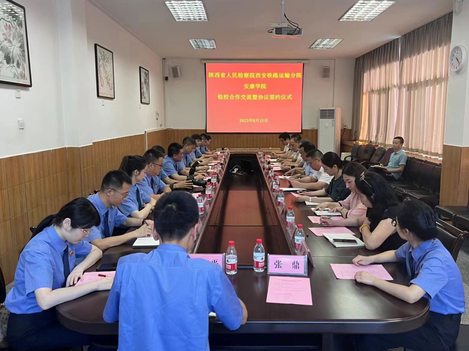 8月15日,陕西省人民检察院西安铁路运输分院党组书记、检察长王勇一行莅临best365官网调研座谈并签订合作协议。校长钟生海出席座谈会,副校长余谦陪同调研并主持会议。